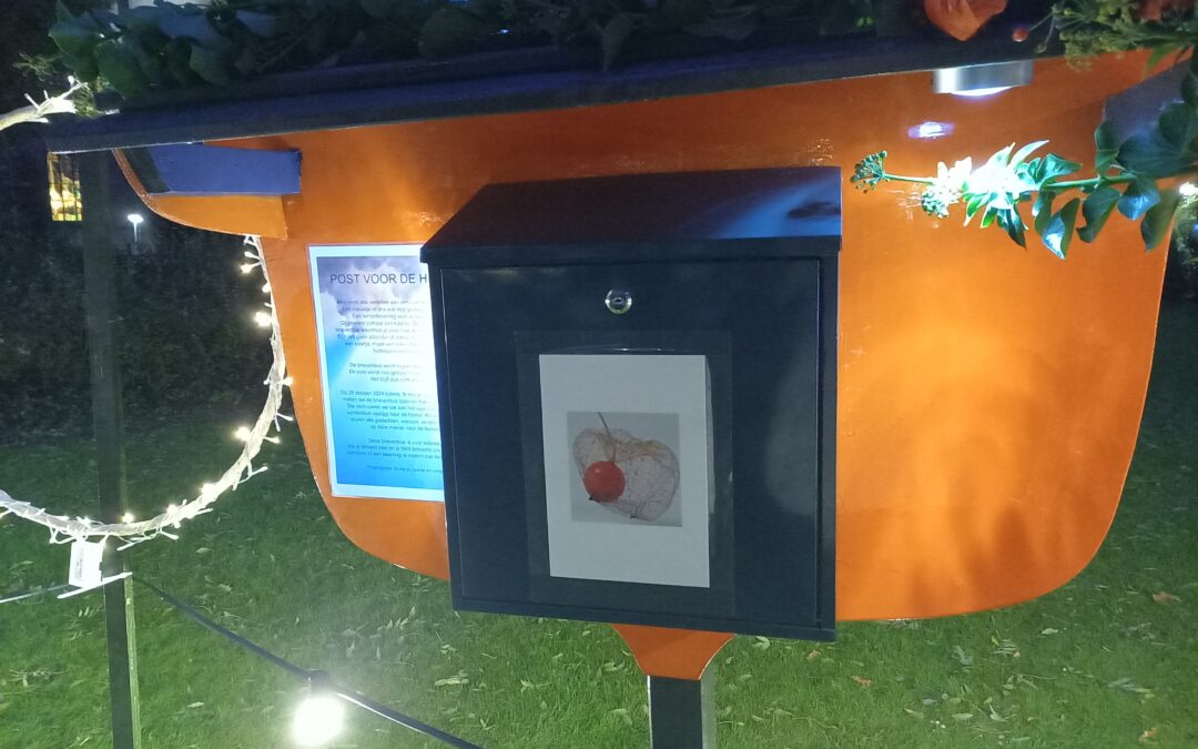 Op deze 28e oktober 2023, een onverwacht droge herfstavond, dobberden bootjes met een brandend kaarsje op het water. Linten met namen werden met zorg opgehangen op het hart. Een verhaal van Toon Tellegen over rouw klonk op in de stilte van de avond. Brieven en tekeningen verdwenen in de speciale ‘Post voor de hemel’ brievenbus. Zachte klanken van zang met gitaar en gedichten vonden hun weg. De roze-paars verlichte bomen gaven het geheel een mystieke sfeer.